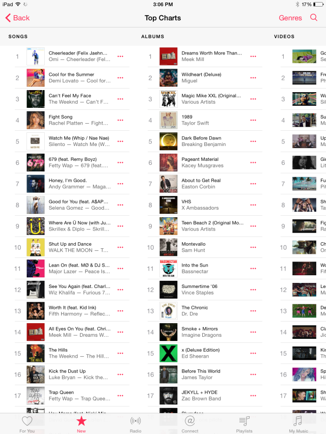 For more surprising songs and options, the "New" and "Radio" tabs are your best bets; the former is actually better described as a combination of the App Store's "Top Charts" and "Featured" tabs, and you can either queue an album or have a "top charts" playlist begin in any genre of your choice.... The latter, as mentioned before, contains all of iTunes Radio's old playlists—in skip-free form for paying subscribers—along with the free-for-all-users Beats One radio station.